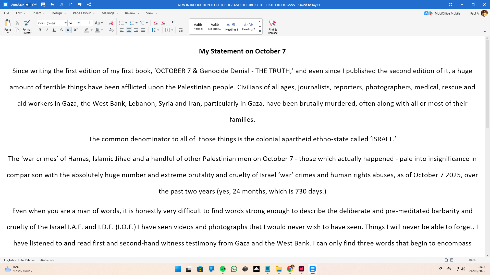 Since writing the first edition of my first book, โOCTOBER 7 & Genocide Denial - THE TRUTH,โ and even since I published the second edition of it, a huge amount of terrible things have been afflicted upon the Palestinian people. Civilians of all ages, journalists, reporters, photographers, medical, rescue and aid workers in Gaza, the West Bank, Lebanon, Syria and Iran, particularly in Gaza, have been brutally murdered, often along with all or most of their families.