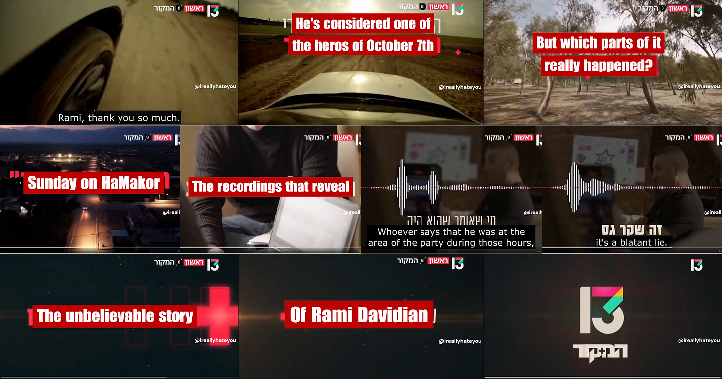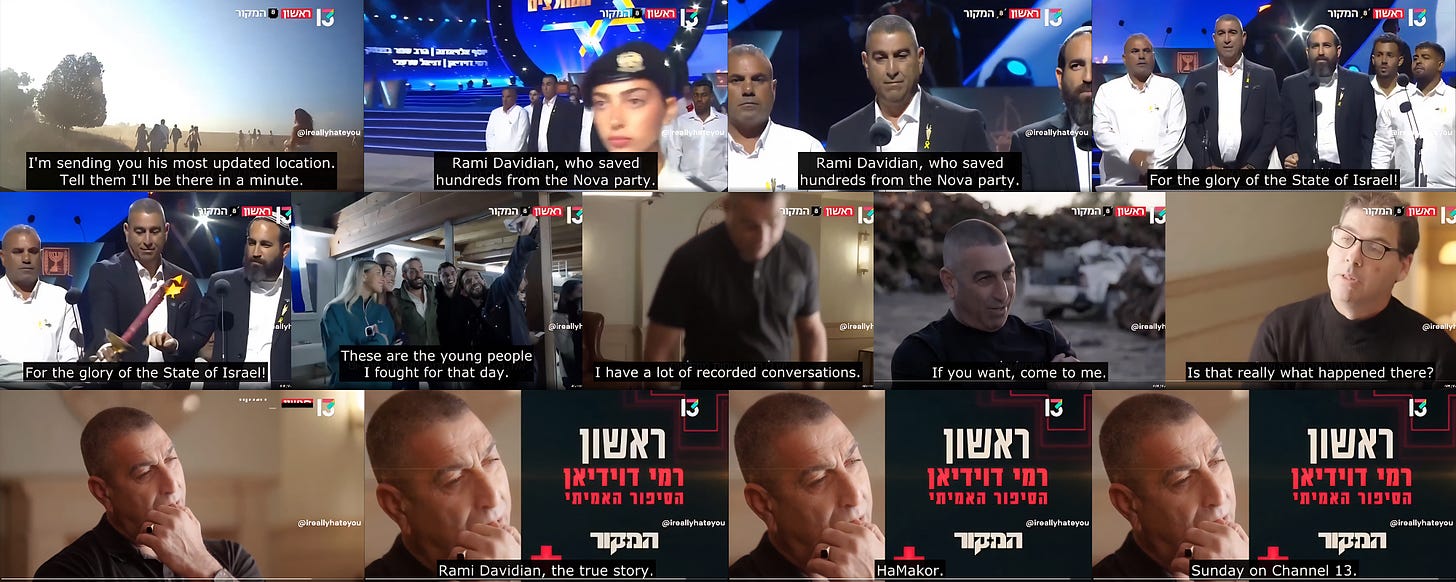 Rami Davidian was the main source of the October 7 mass rape lies; he also claimed to have rescued up to 750 Nova Music Festival party-goers. So how much of what he said was true?